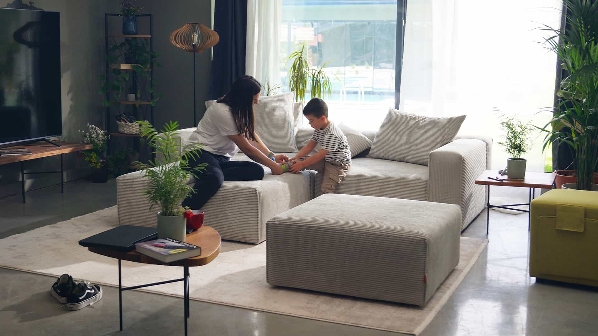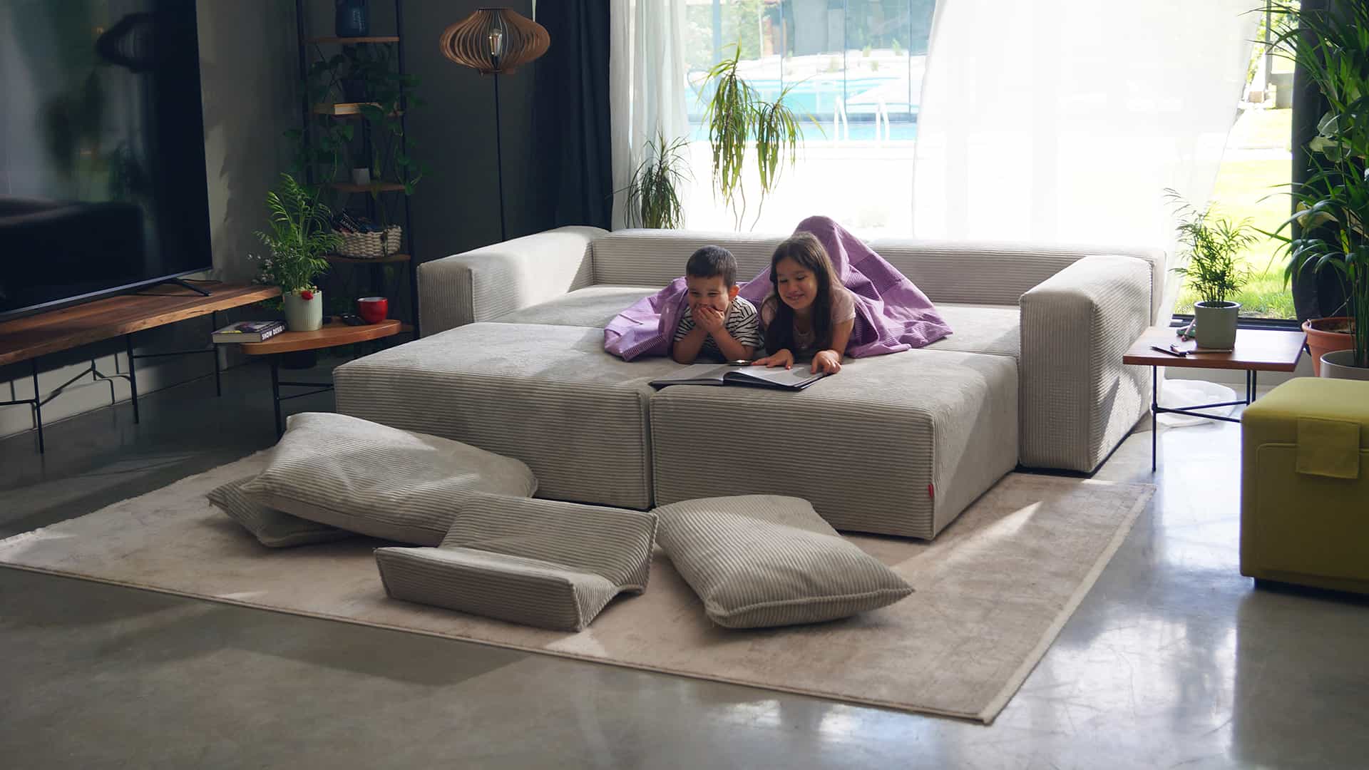 Εκτεταμένος γωνιακός καναπές