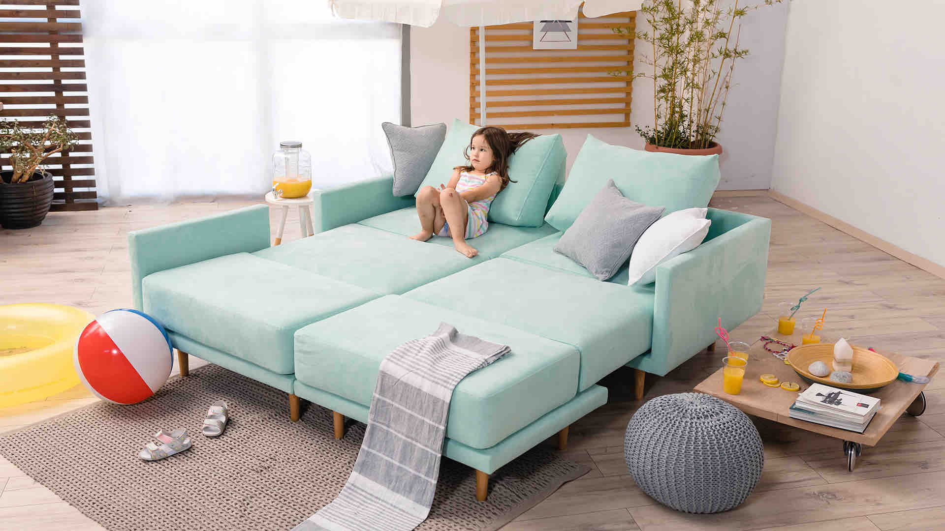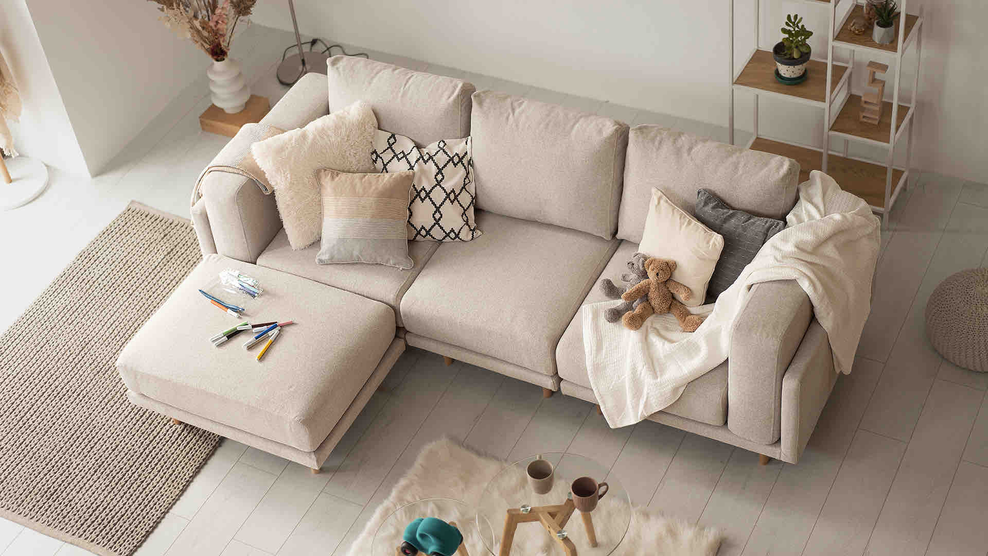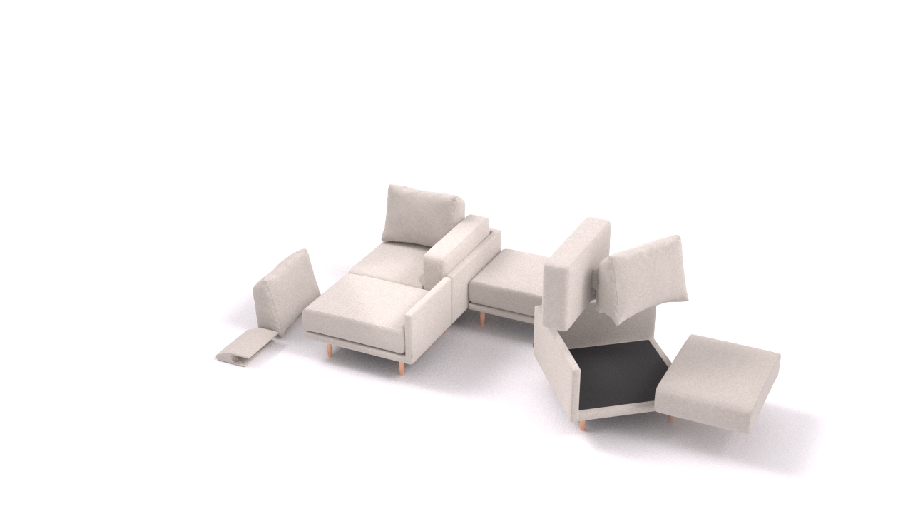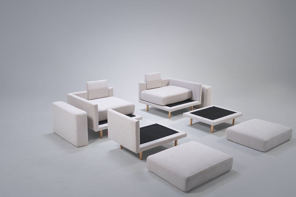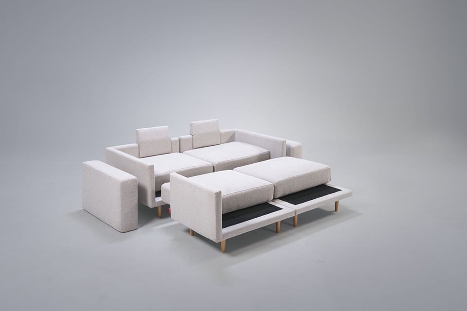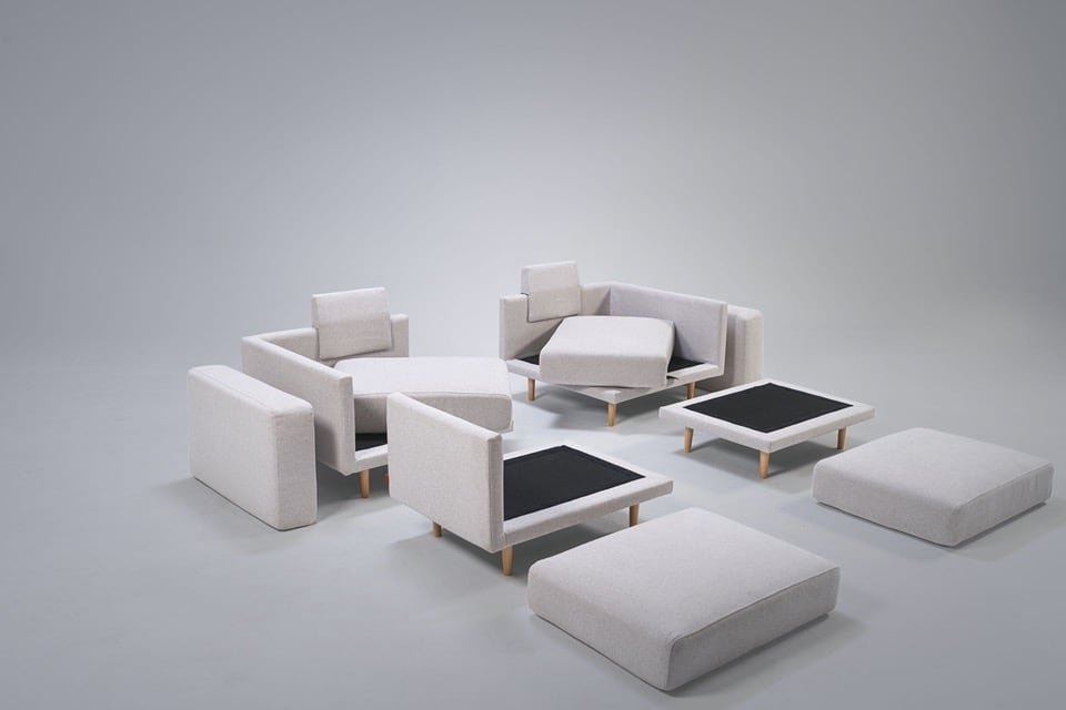 Αν αλλάξετε γνώμη, κανένα πρόβλημα.Απλώς αναδιαμορφώστε τα κομμάτια του καναπέ σας - οι συνδέσεις velcro λειτουργούν σε οποιαδήποτε θέση.