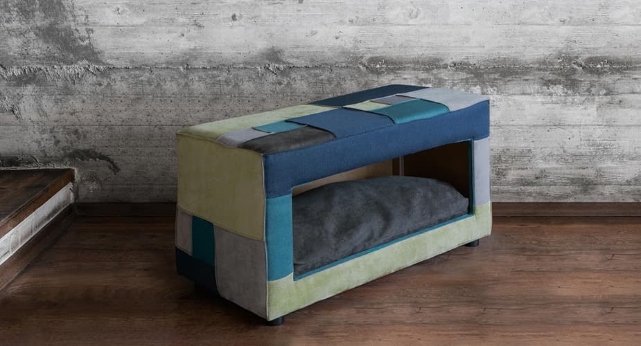 Σκαμπό κατασκευασμένο από υπολειμματικά υφάσματα με χώρο για κατοικίδια 90 × 45 cm